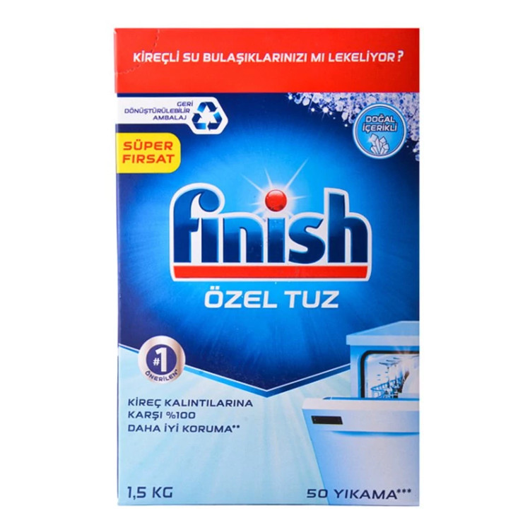 نمک ماشین ظرفشویی فینیش محصولی کاربردی برای نرم کردن و از بین بردن سختی آب می باشد و از این طریق از ایجاد جرم و لکه های آب در ظروف شیشه ای، بلورین و لیوان ها جلوگیری می کند. این محصول با جذب رسوبات و جلوگیری از ایجاد رسوبات جدید، از عمر مفید و عملکرد دستگاه تا 100 درصد محافظت می کند و موجب بهبود عملکرد آن می گردد.آب لوله کشی منازل حاوی مقادیر زیادی مواد معدنی از جمله منیزیم و کلسیم می باشد که این مواد در ظرفشویی ته نشین شده و به مرور باعث ایجاد جرم می شوند.